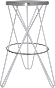 - Brushed Silver Iron / White Powder Coated Bar Height Stool