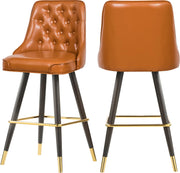 Bring home a classic look with this Portnoy faux leather bar/counter stool. This elegant stool offers traditional deep button tufting on its seat back for a sophisticated design that adds refined beauty to your home bar or counter. The soft cognac faux leather is rich and supple to the touch and looks authentic. The stool rests on espresso wood legs and has a gold footrest and hardware for an elegant finish.