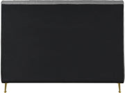 Slip into the lap of luxury with this Zara Velvet Bed. This beautiful queen bed is padded to the max on its headboard and footboard for a look that is nothing short of upscale. The luxe design is amplified by the bed���s rich grey velvet upholstery and its deep detailed channel tufting, which also serves to keep the interior padding aloft, full, and comfortable while you relax or unwind in bed. The bed has gold legs for a regal touch, and it comes with slats, so it doesn���t require a box spring.