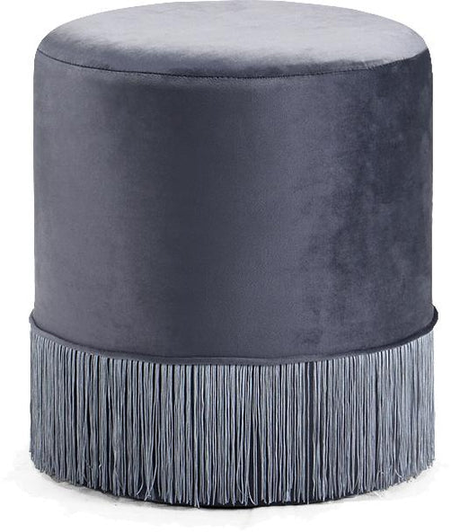 Bring a touch of romance to your space with this frilly Teddy Grey Velvet Ottoman/Stool. A fringed border of tassels surrounds the bottom perimeter...