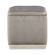 AICO Furniture Linea Linea Ottoman Gray Pearl in Silver Mist NLRU-LNEA875-GPL-823. Designed for luxury accenting and everyday relaxation, the Linea Ottoman is upholstered in soft gray velvet and held in a gleaming platinum finished frame. Made with the same fabric that welts the Linea Chair and Sofa, this ottoman blends perfectly into the collection while bringing a splash of modern contrast. Functional should never feel boring.