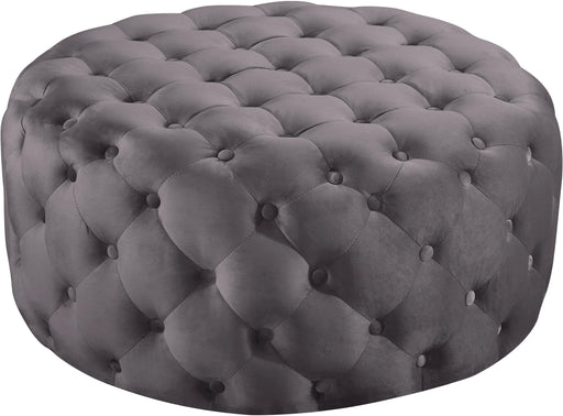 Rest weary legs at day's end atop the welcoming comfort of this Addison grey velvet ottoman. This Hollywood-inspired ottoman features deep button t...