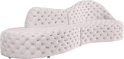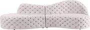 Settle in for family game night atop this Royal velvet sectional that���s upholstered with soft cream velvet material. This 3-piece sectional has a lot to offer, with its deep seating and extra wide design that gives you oodles of room to move around and get comfy. The tufted design of the arms, back, and seats adds to their durability and soft, welcoming touch. The sectional comes in neutral colors to mesh nicely with other elements in your room.
