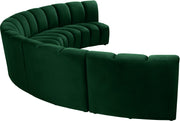 Create a seating group that works for every possible situation with this Infinity modular 5-piece sectional and other pieces in the Infinity collection. Upholstered in soft green velvet material that feels great against the skin and offers long-wearing beauty, this piece fits with other Infinity items for an infinite number of combinations that get your seating requirements just right but that look just as nice when used on their own.