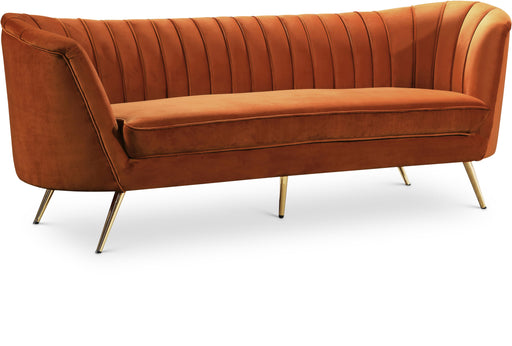 Lean back and lounge in luxurious style on this stunning Margo cognac velvet sofa by Meridian Furniture. This contemporary sofa features plush velv...