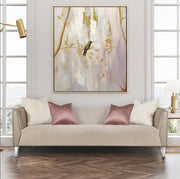 • Sofa is upholstered in a woven fabric with shimmering threads