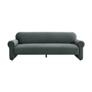 You can count on the Keelee Sofa to amplify the stylishness of your space. This sofa is sleek and sculptural with mid-century influences, it features a sturdy pine frame enveloped in a luxurious velvet fabric, and accented with tastefully rounded arms. Available in 2 color options to suit your personal preference!