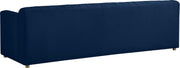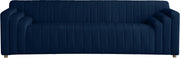 Express your bold, contemporary side with this Naya velvet sofa. This handsome piece is upholstered in navy velvet and blends seamlessly with the other units in the Naya collection, or it looks equally as beautiful on its own. Deep channel tufts run the length of the back, arms and seats of this unit, ensuring its exceptional comfort while giving it a decidedly modern vibe.