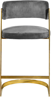 Create an elegant look in your kitchen and beyond with our Stephanie Velvet Counter Stool. A metal base finished in gold gives it a glamorous contemporary look. The high quality velvet upholstery is soft and luxuriously plush, with a padded seat and back cushion.