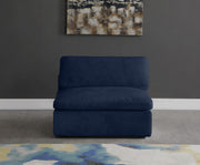 Bring home this Cozy armless chair for a fresh new look. Embrace casual elegance with this Cozy velvet cloud modular down-filled seating option. Handsome from all angles, this piece features soft navy velvet upholstery to make it an easy fit in any room. This modular piece can be combined with other items in the Cozy collection to create a seating group of your dreams. The cushions on this piece are exceptionally comfortable���and filled with down for luxury that you deserve as you rest and relax.
