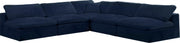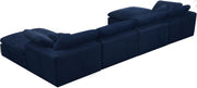 Bring home this Cozy 4-piece sectional for a fresh new look. Embrace casual elegance with this Cozy velvet cloud modular down-filled seating option. Handsome from all angles, this piece features soft navy velvet upholstery to make it an easy fit in any room. This modular piece can be combined with other items in the Cozy collection to create a seating group of your dreams. The cushions on this piece are exceptionally comfortable���and filled with down for luxury that you deserve as you rest and relax.