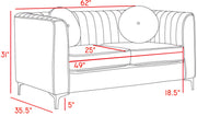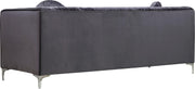 The Isabelle Collection by Meridian Furniture. Features beautifully designed velvet upholstery with custom chrome legs. This collection is guaranteed to be the highlight of any home. Throw pillows included.