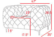 Elegant and eye-catching, the stunning Mercer Living Room from Meridian Furniture is the perfect addition to any space. Rich Velvet covers the plush, comfortable seat, padded with high-density foam and modern tufted design. Strength and beauty is guaranteed with a solid wood frame and chrome legs.