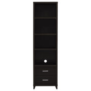Overhaul your living space with this cappuccino entertainment wall. This wall is constructed with four pieces, including one TV console, two media towers and one bridge. A total of 16 shelving units are available to store your media and decor. Meanwhile, five concealed drawers enhance the organization of your living space. This transitional entertainment wall is suitable for all styles of living spaces with its clean and modern design.