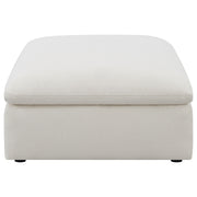 This square ottoman combines comfort with versatility, making it a stylish addition to any room. Upholstered in soft fabric, it features a generously padded cushion that offers a cozy place to rest your feet, serve as extra seating, or function as a casual coffee table. Clean lines and refined topstitching create a tailored, modern look. Treated fabric resists moisture, giving you time to wipe up spills with ease. Built with a sturdy wood frame, this ottoman is designed for long-lasting use. Key Features: • Square ottoman in ivory fabric with clean lines and refined stitched accents • Generously padded cushion provides lasting comfort for feet or seating use • Moisture-repellent treated fabric makes spills easy to wipe up quickly • Supportive foam cushioning offers durability and consistent resilience • Performance-grade fabric upholstery ensures strength and soft texture • Sturdy wood frame construction provides reliable everyday functionality