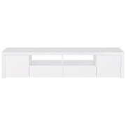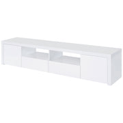 Elevate your entertainment realm with our sleek, modern TV stand. With a pristine glossy white finish and clear glass accents, it exudes elegance. Beyond looks, it's the epitome of functionality. Soft-close drawers glide effortlessly, housing your gadgets, while the glass shelves offer a stylish display. Spacious storage compartments keep your media essentials neatly organized. This stand, a harmonious blend of style and function, becomes an indispensable centerpiece for any contemporary entertainment space. Key Features: • Sleek, modern TV stand with pristine glossy white finish and clear glass accents • Soft-close drawers glide effortlessly, housing your gadgets • Glass shelves offer stylish display • Spacious storage compartments keep media essentials neatly organized • Harmonious blend of style and function for any contemporary entertainment space