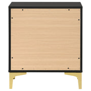 Flank your bedside with this modern glam nightstand. Designed with an elegantly understated, boxy frame, this two-drawer nightstand lends a chic, contemporary aesthetic. Clean lines and a bright, white finish elevate its sophisticated nature. Fastened to each deep drawer is a slim gold pull handle for a touch of metal. Unifying the warm metallic elements are gold bracket style legs that lend a retro look and feel. Key Features: • Perfect for contemporary and modern bedrooms • Two deep drawers offer all the space you need for bedside essentials • The bright, white finished frame ensures a light and airy disposition • Gold finished pull handles create a luxe flair • Gold bracket style legs carry through the warm metallic accents