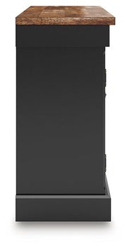 Raise the bar on modern farmhouse style with this dining buffet. Its handsome good looks are accentuated with a two-tone finish and a casual butcher block veneer top. The sturdy silhouette adds a hearty element, whether your style is vintage, country or eclectic. Three drawers and three cabinets with adjustable shelves serve your entertaining needs well.